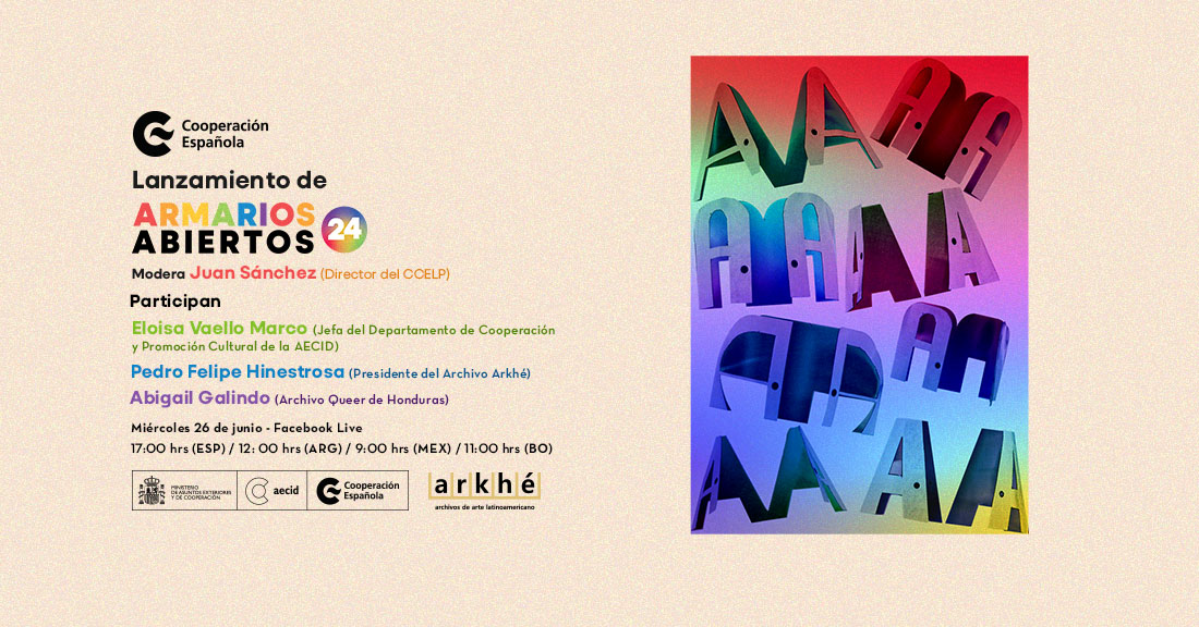 El lanzamiento del programa se realizará el miércoles 26 de junio de forma virtual a las 17:00 hrs (ESP). Contará con la participación de Juan Sánchez, director del Centro Cultural de España en La Paz, Bolivia (CCELP); Eloisa Vaello Marco, jefa del Departamento de Cooperación y Promoción Cultural de la Agencia Española de Cooperación Internacional para el Desarrollo (AECID); Pedro Felipe Hinestrosa, presidente del Archivo Arkhé; y Abigail Galindo, del Archivo Queer de Honduras.