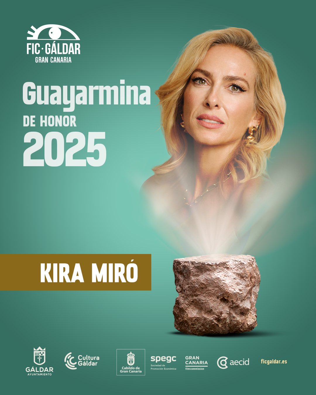 La 13ª edición del Festival Internacional de Cine de Gáldar, organizada por la concejalía de Cultura y Fiestas del Ayuntamiento de Gáldar con la colaboración de la Agencia Española de Cooperación Internacional para el Desarrollo (AECID), la Consejería de Cultura del Cabildo de Gran Canaria y la Sociedad de Promoción Económica de Gran Canaria, distinguirá con la Guayarmina de Honor 2025 a la actriz grancanaria Kira Miró. La organización del FIC Gáldar reconoce así la trayectoria de una de las actrices españolas más versátiles y con una de las carreras más sólidas en el mundo del cine y la televisión.